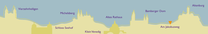 Sie wohnen in ruhiger Lage am westlichen Stadtrand. Für die 2,5 Km in die Innenstadt benötigen Sie 20 min zu Fuß oder mit dem Bus. Die Bushaltestelle Linie 910 ist 150 Meter vom Haus entfernt und hält u.a. am Dom, Klein Venedig und Michelsberg.